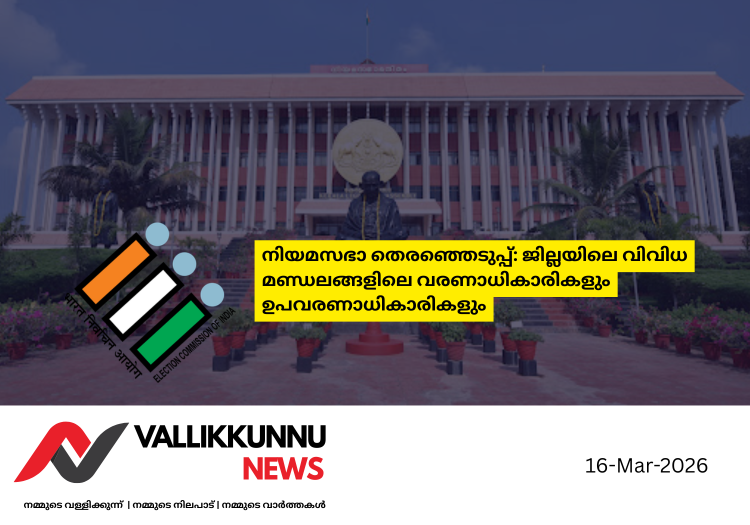 നിയമസഭാ തെരഞ്ഞെടുപ്പ്: ജില്ലയിലെ വിവിധ മണ്ഡലങ്ങളിലെ വരണാധികാരികളും ഉപവരണാധികാരികളും 16 March 2026